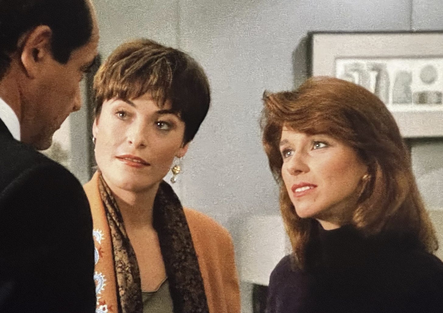 It took me completely by surprise when Amanda Donohoe and Michelle Green kissed each other. It was the first all-female kiss in the history of American Primetime TV. (Then just to torture me, Amanda went off and starred in the Ken Russell production of DH Lawrence's The Rainbow as a lesbian teacher. I think I borrowed that so many times I wore the video store tape out.)