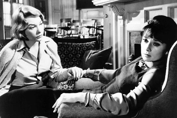 I watched The Children's Hour in a cinema full of lesbians at a film festival retrospective screening, and it was like being at a late night, audience participation Rocky Horror Picture Show. People hissed at the screen when the troublemaking brat appeared. We all held our collective breaths as Martha confessed her lonely, dark secret. We yelled at Karen to hurry as she climbed those stairs to see Martha at the end, as if our cries could somehow stop the inevitable from happening. And as Audrey Hepburn walked through the gates of the school for the last time we cried with the hopelessness of it all.